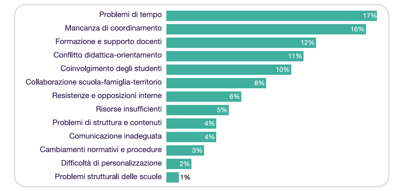 - Mancanza di tempo: è la criticità numero uno per il 17 per cento dei docenti.